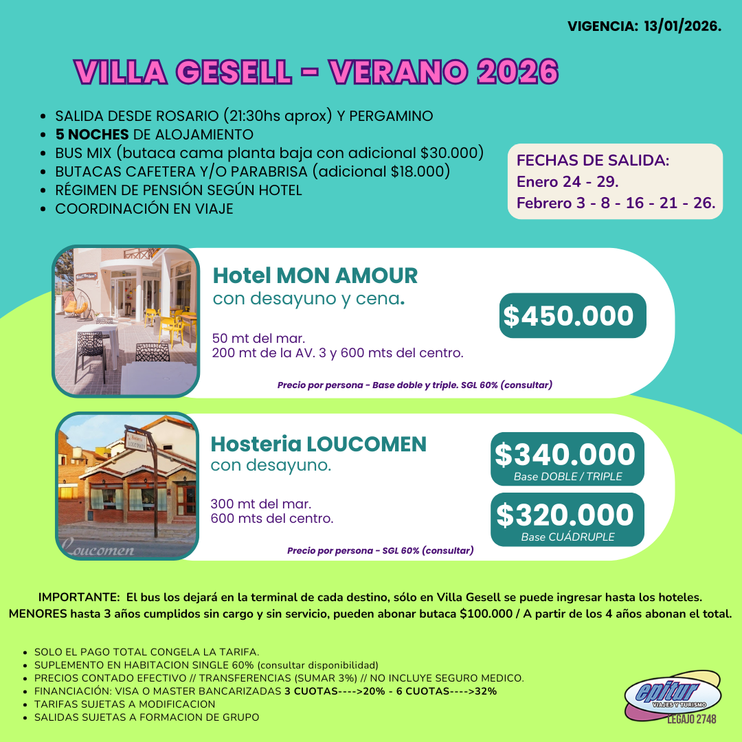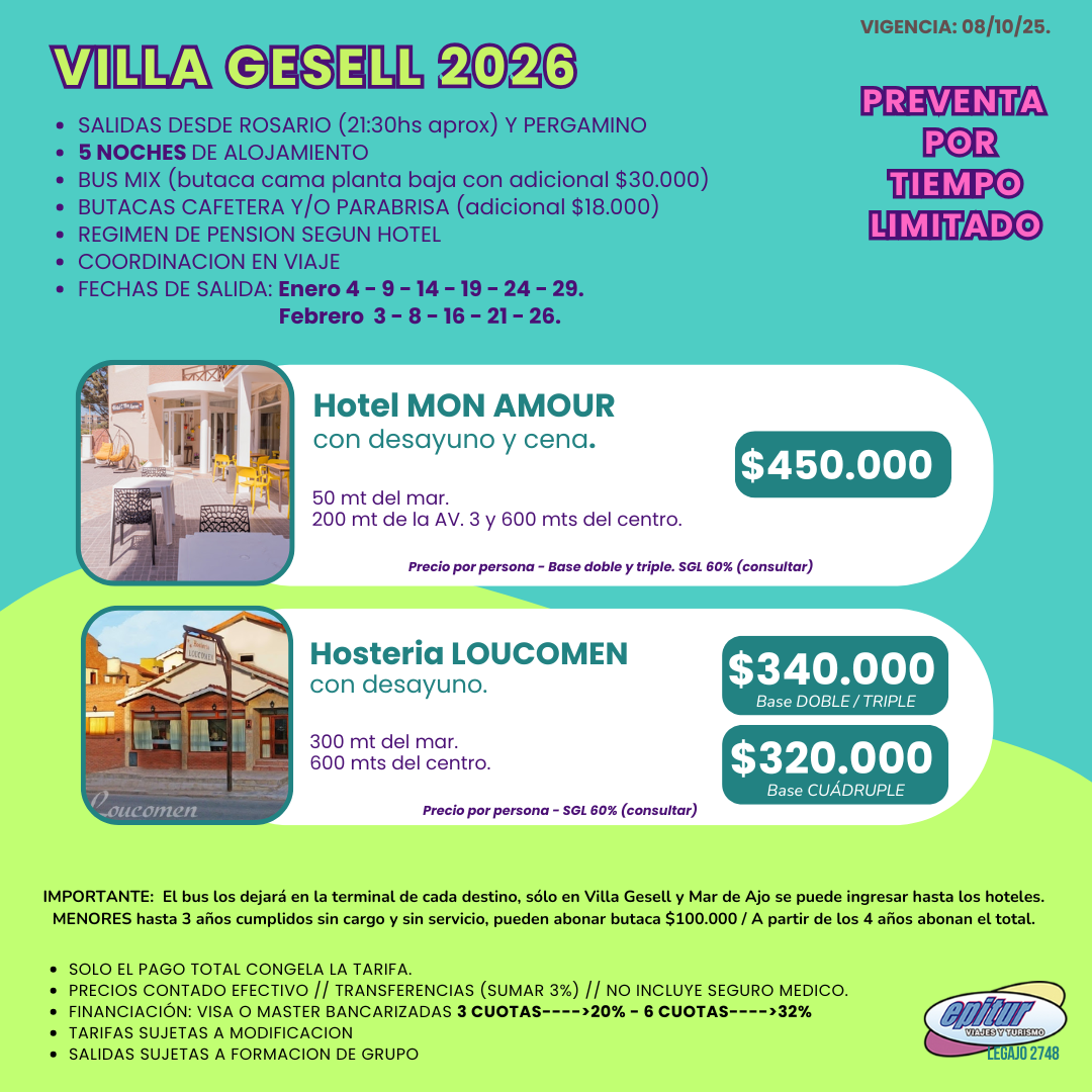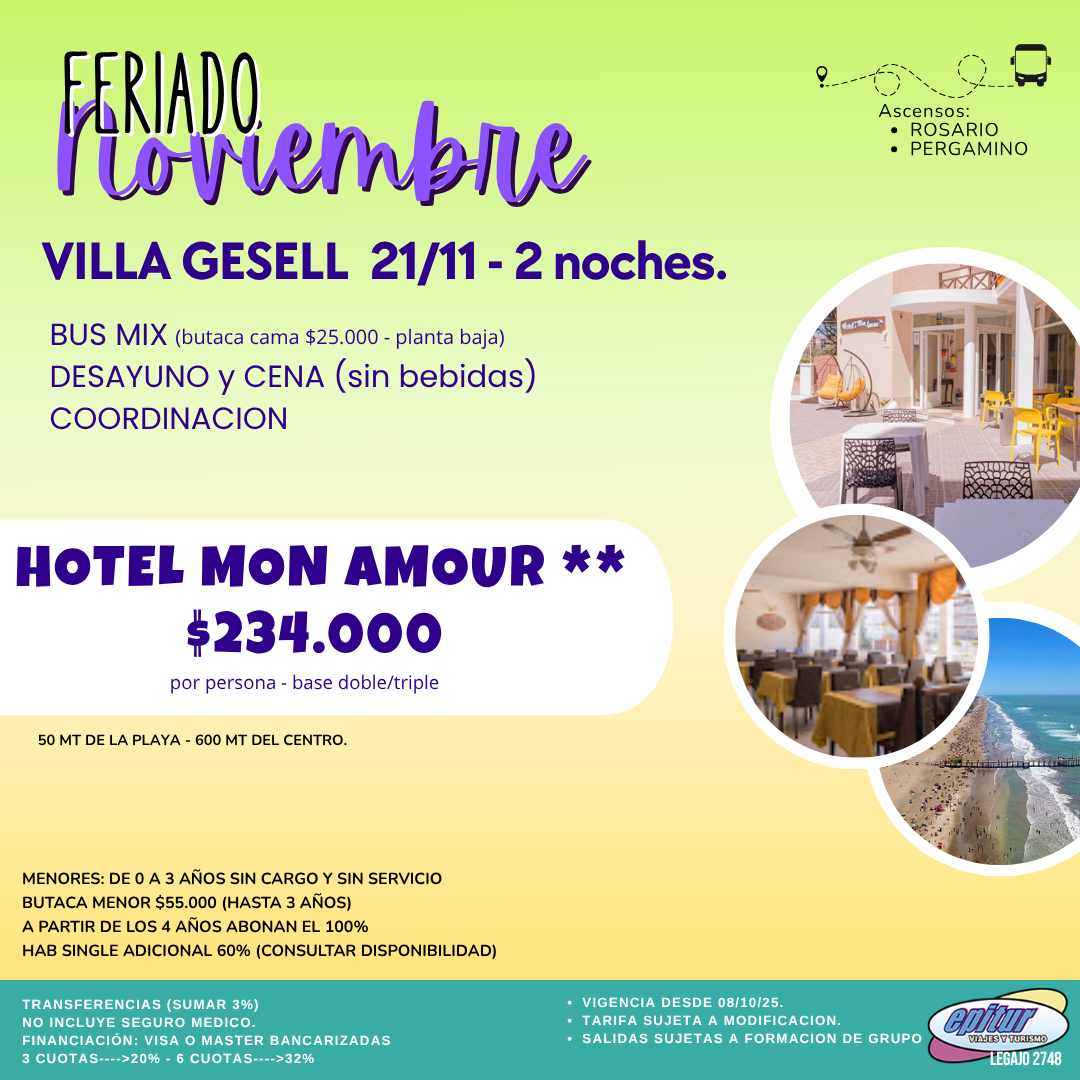 - V. GESELL INCLUYE TRASLADO AL HOTEL.