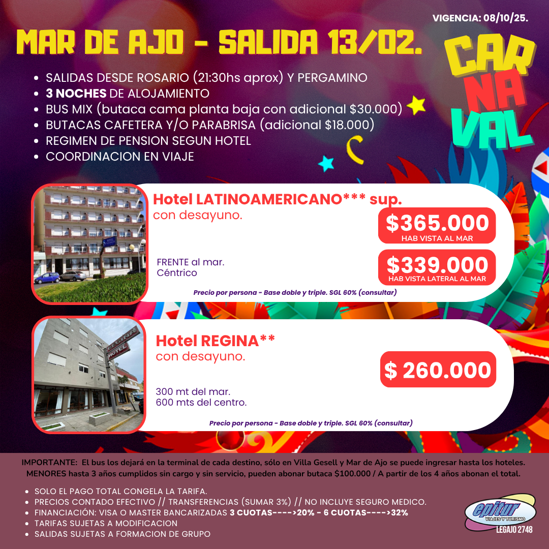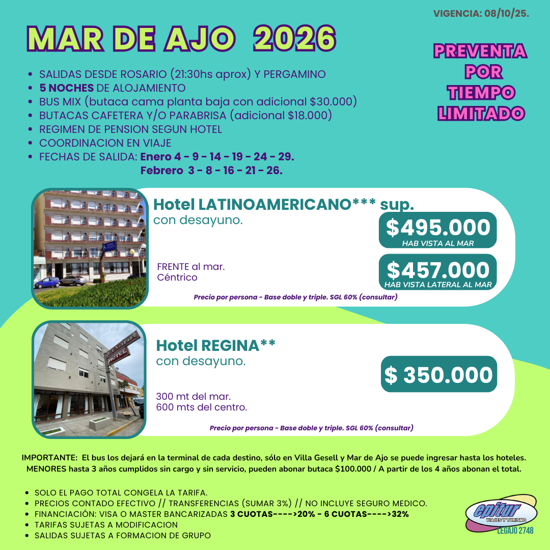 Todas las salidas están sujetas a formación de grupo y a modificación de tarifas.