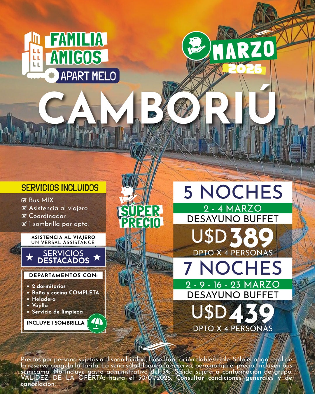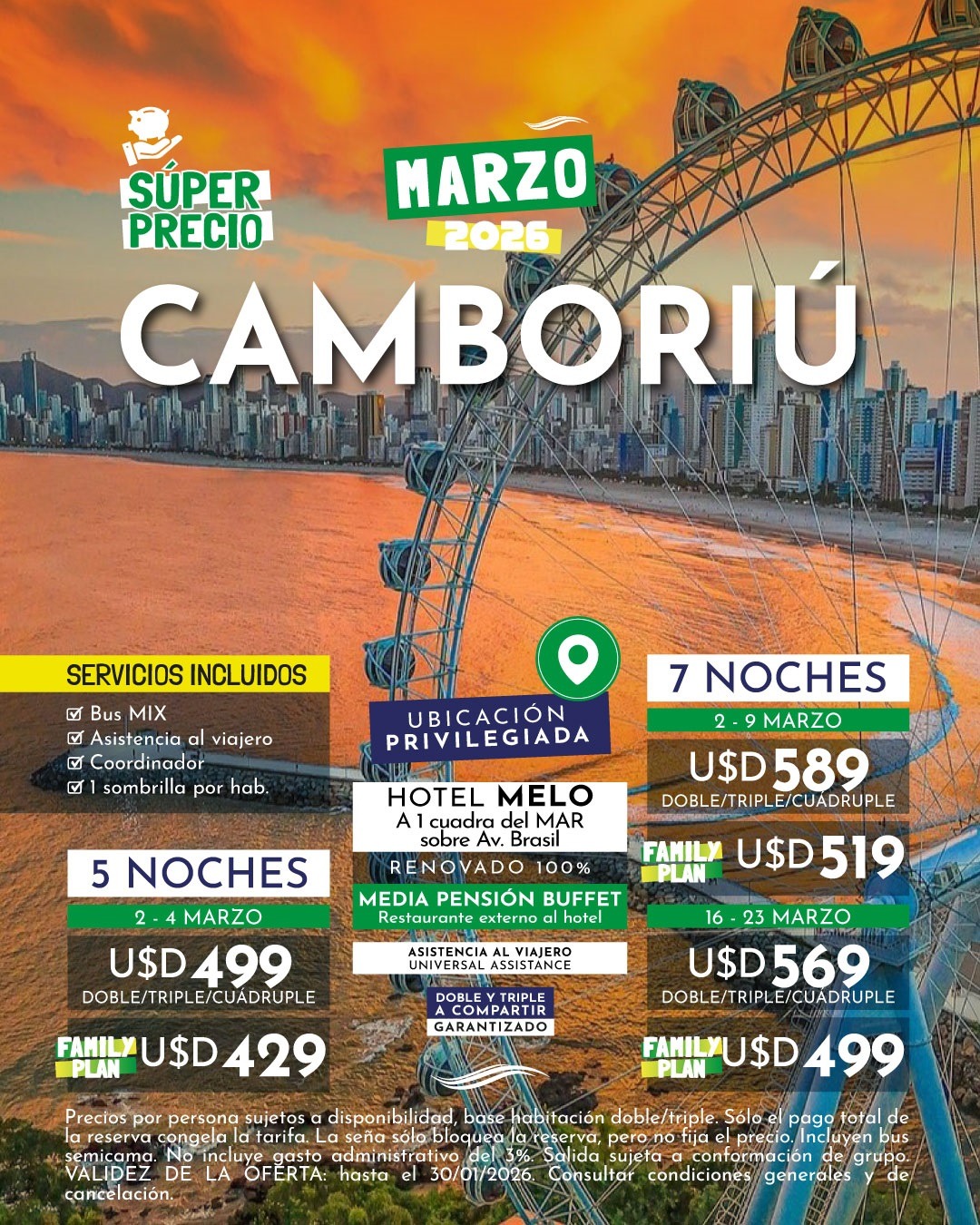 Las tarifas están sujetas a modificación y confirmación al momento de la reserva.