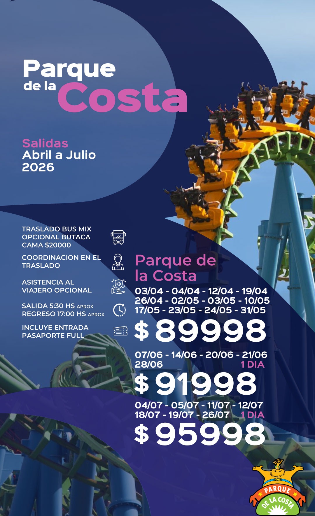 INDICACIONES QUE PODES ENCONTRAR EN LA WEB https://www.parquedelacosta.com.ar/