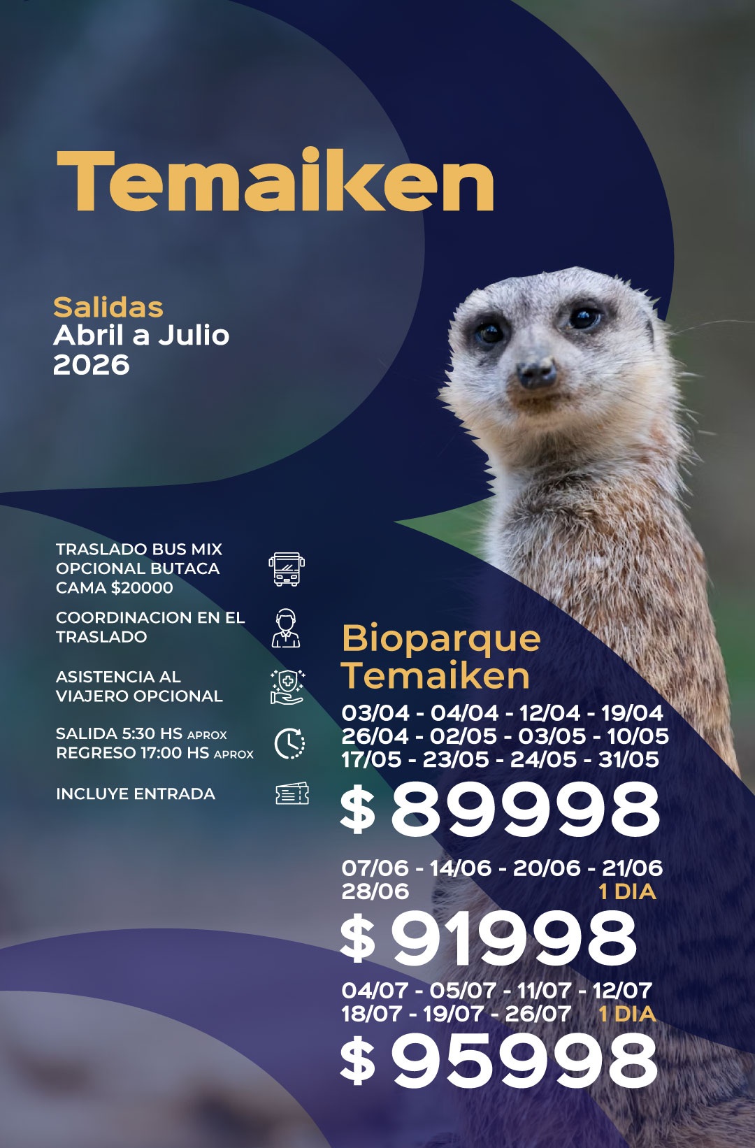 Precios solo contado efectivo // Todas las salidas están sujetas a formación de grupo y a modificación de tarifas.