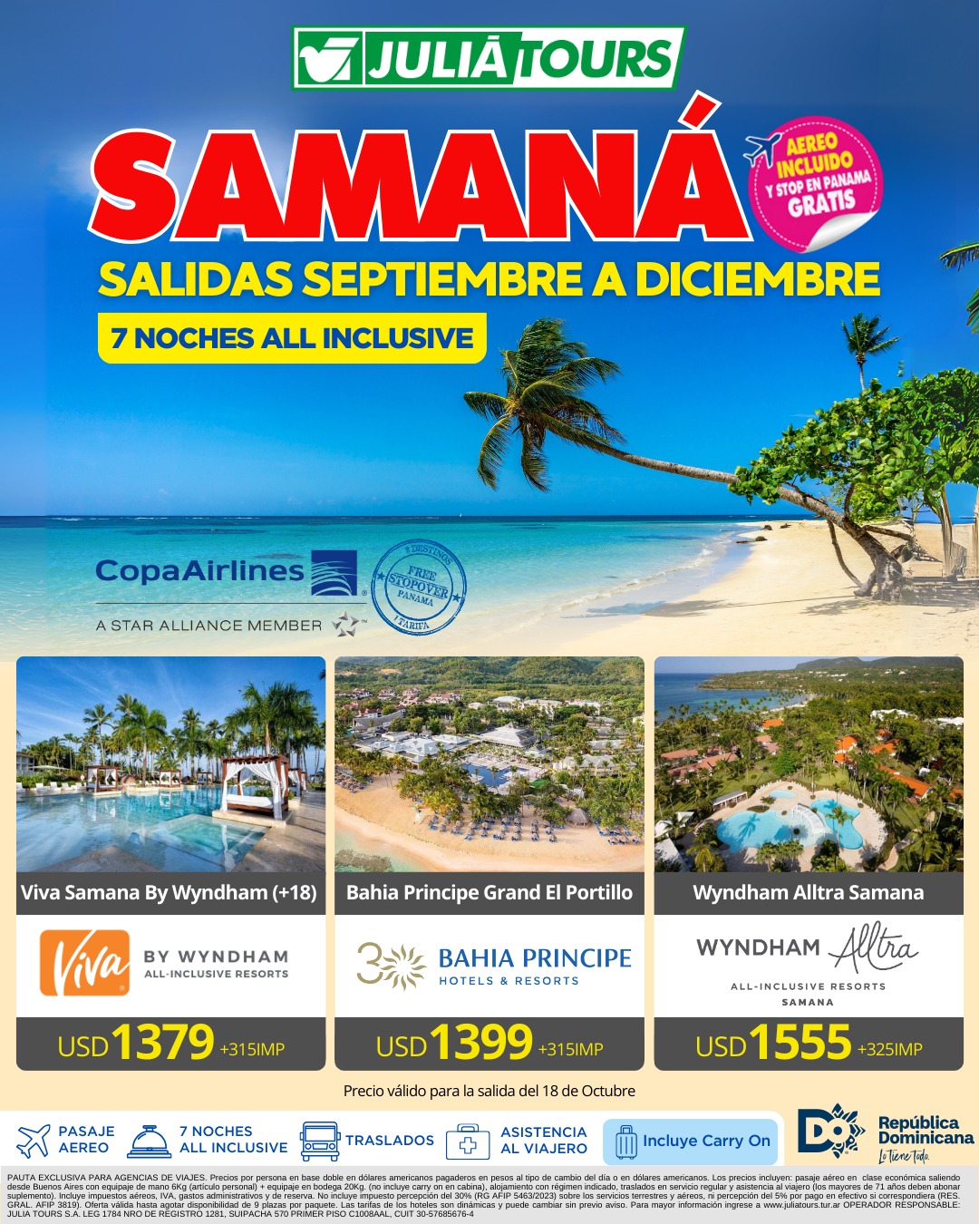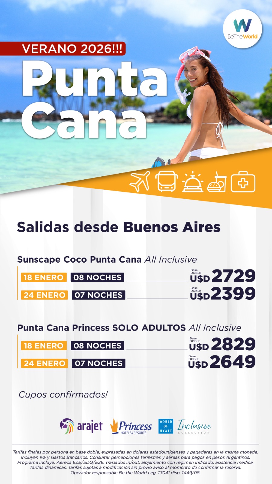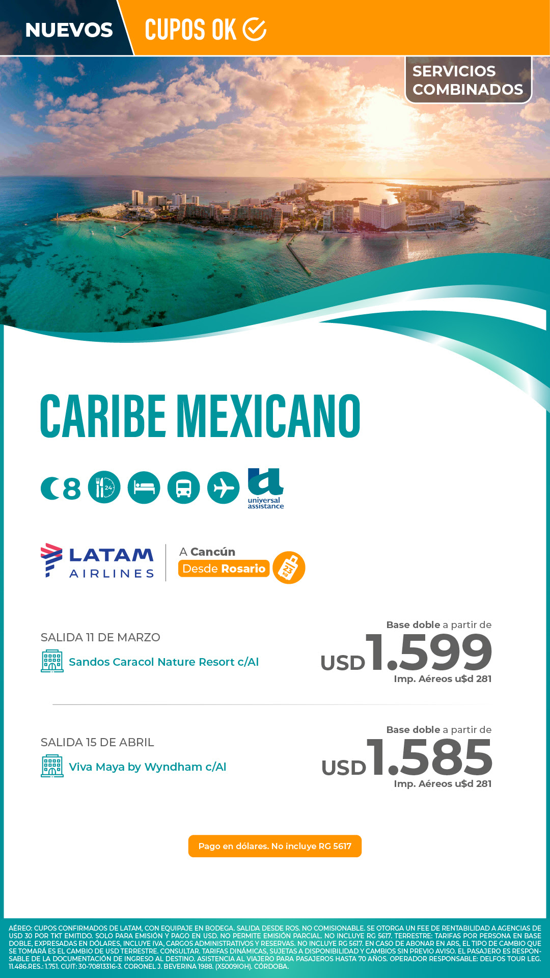 Tarifas en dólares por persona